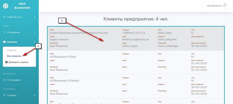Добавлять и редактировать клиента можно на уровне предприятия, и на уровне сотрудника.
